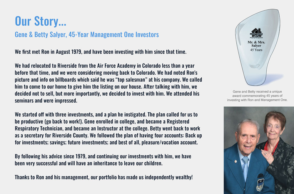 - We also have massive resources from being in the rental business for 38 years and a following of thousands of past and current residents and owners who refer us renters.